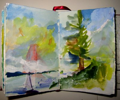 Sunday’s drawing, completed poolside, with kids.