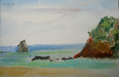 Drove to Muir Woods and Muir Beach today with a visiting sister and niece. The forecast promised rain, but we had beautiful weather for a hike in the woods and a walk on the beach.