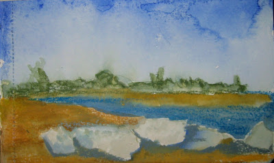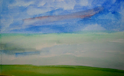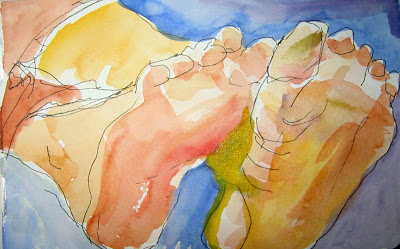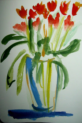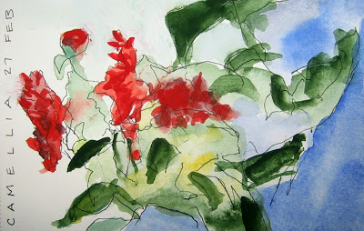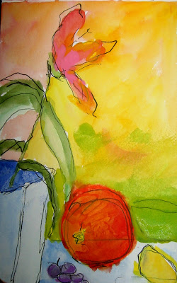 A semi blind contour drawing of the tree on the porch. Color added later in the evening. Posted the next day.