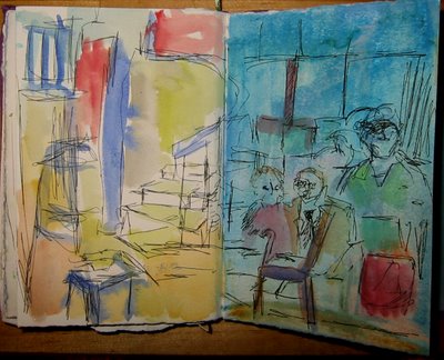 I had a teacher in art school who always made us draw from our paintings. This was made after completing the above painting. Again, it was a good exercise in forward and back…each informs the other. And it’s nice for me to take the pressure off of the daily sketch being a completed work–it’s just another visual attempt to get at something else…
