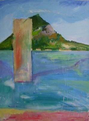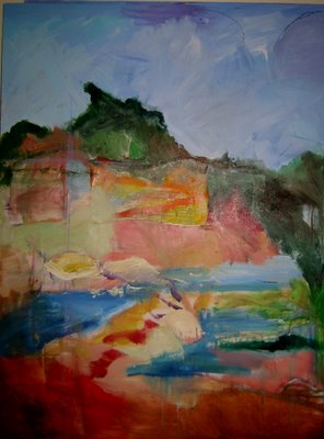 I am meditating on “glance” a painting I made over the weekend. The rectangle in it seems unintegrated, but it felt right at the time, and somehow still does. I am trying to figure out if this is stubborness on my part, or is something else going on? Or is this just a painting that’s meant to lead me other places? I sort of love “glance” despite all its problems. I am walking around humming the theme song to Close Encounters of The Third Kind–doo, doo ,doo, doo dooooooo. Why do I keep returning to the mountain and the rectangle?